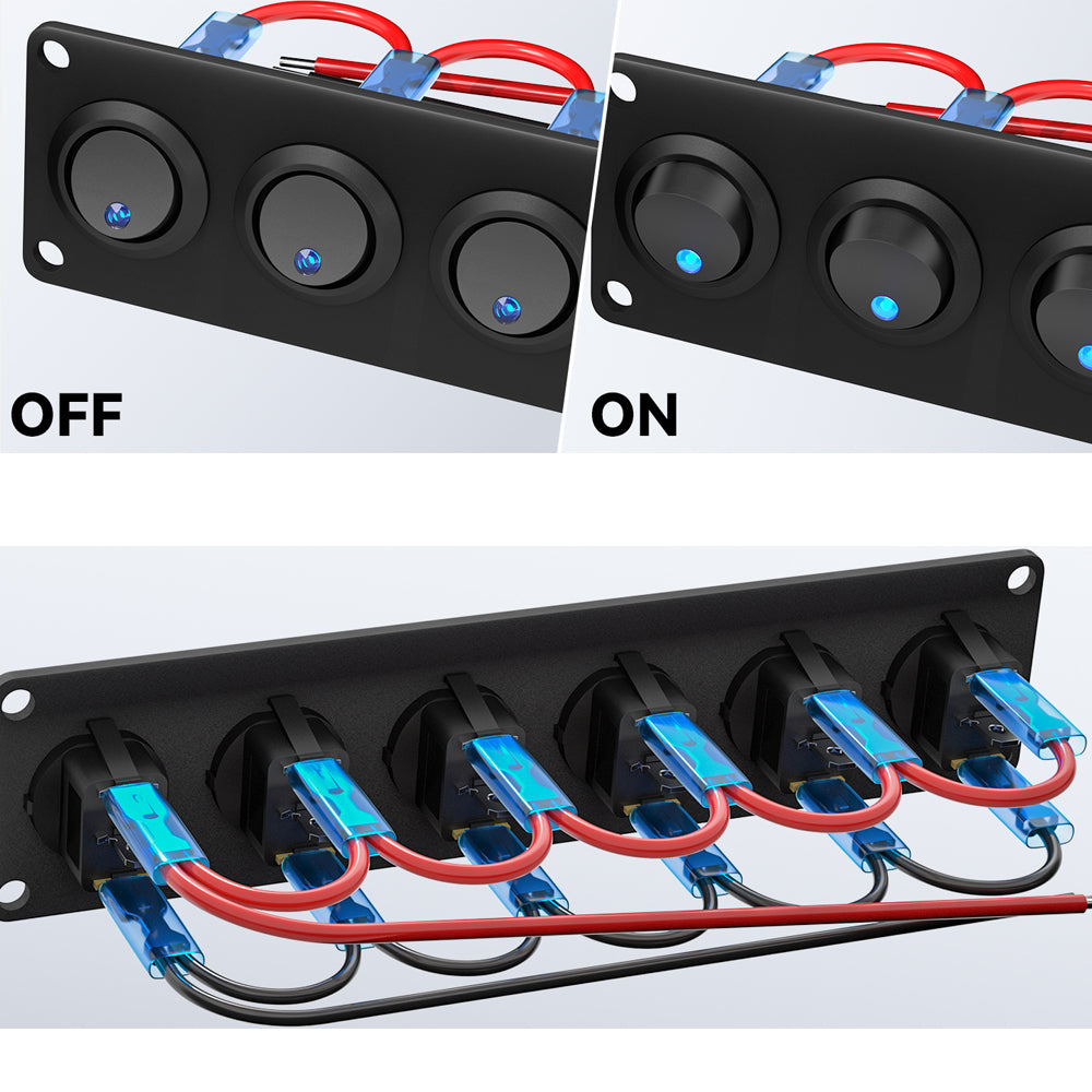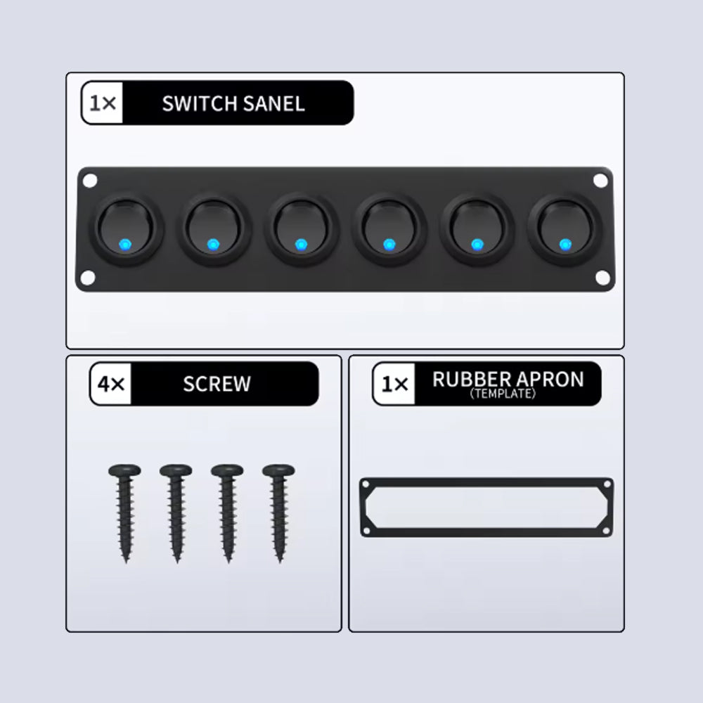 【What You Get】The 12v toggle switch panel includes 1 x 6 way switch panel, 4 x screws, 1 x rubber apron