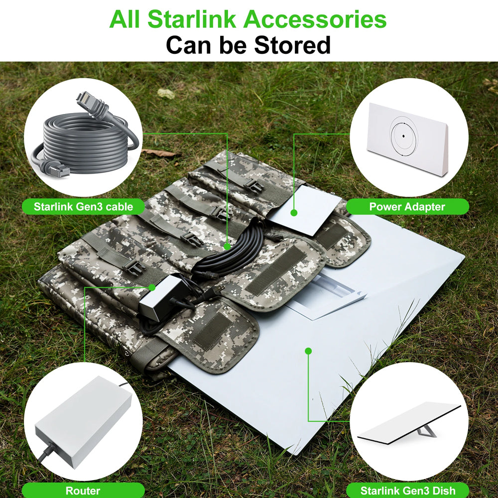 Easy to Organize:The Starlink Gen 3 case features a four-pocket design, with a large pocket for the Starlink Gen 3 antenna and three smaller pockets for Starlink accessories. This design prevents collisions and tangling between accessories, making it easy to organize and access your equipment, whether at home or on the go.
