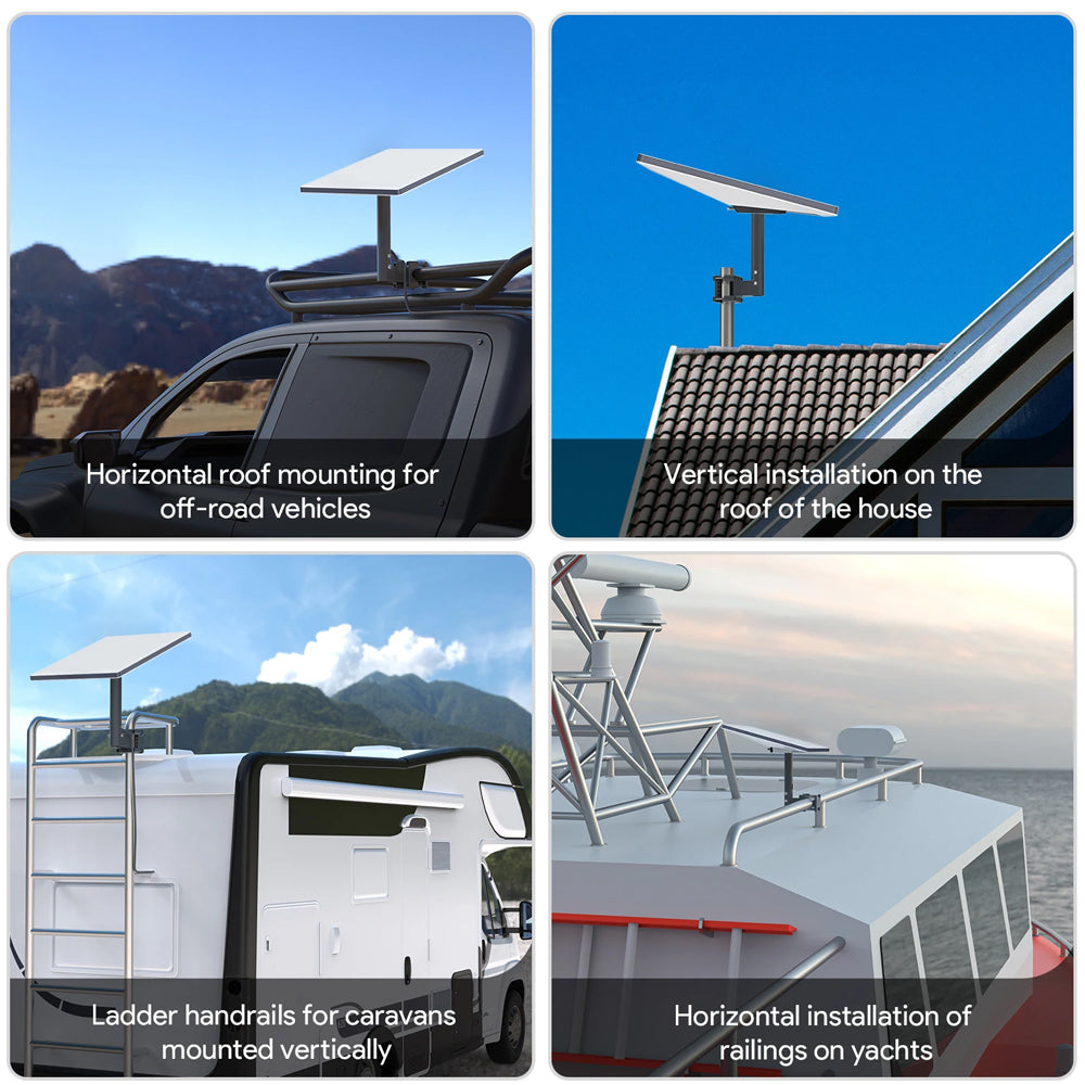 【Quality Materials】 Constructed from high-strength aluminum alloy, the Starlink Mini RV Mount ensures exceptional durability and performance. It includes a robust connector to securely hold your Starlink Mini Dish in place. Compatible with Starlink Mini models, this mount is a dependable choice for a secure and stable Starlink Mini setup.