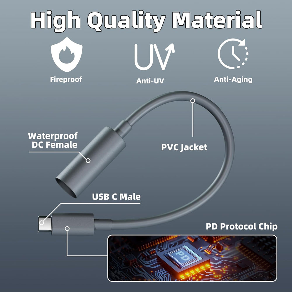 This starlink mini usb c to dc adapter is specially designed to convert the DC plug of the starlink mini DC power cable to the USB-C plug, allowing you to charge your Starlink Mini by using the USB-C charger or power bank.